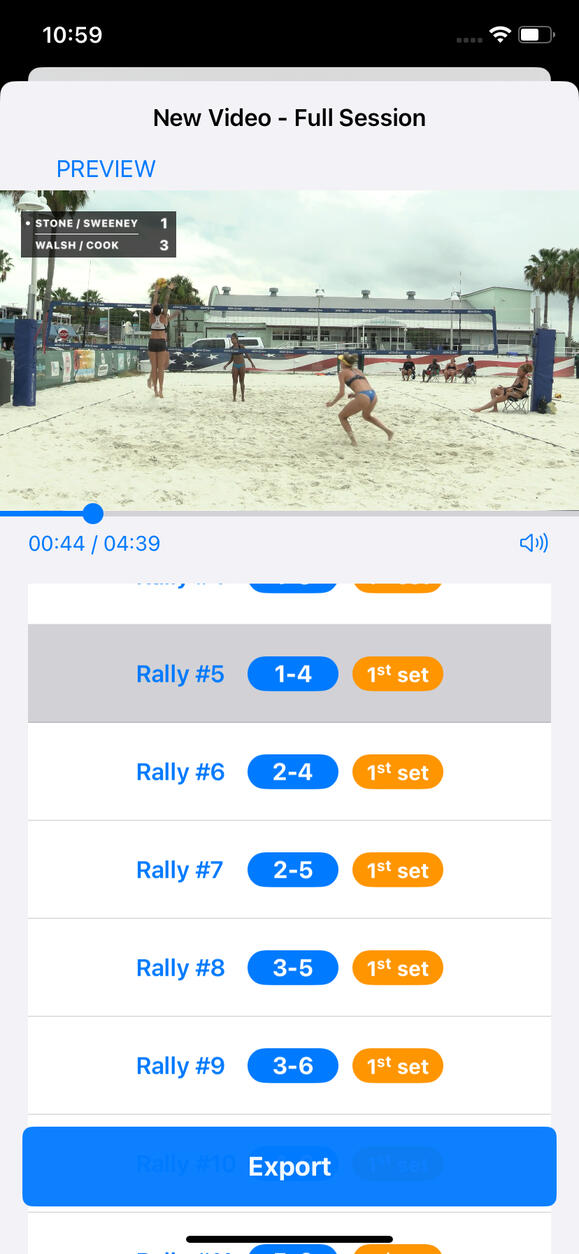 Create highlight videos fast. BeachLab automatically removes the time in between points in your beach volleyball videos. Add a scoreboard, slow-motion effect, and more, and share them with your friends!